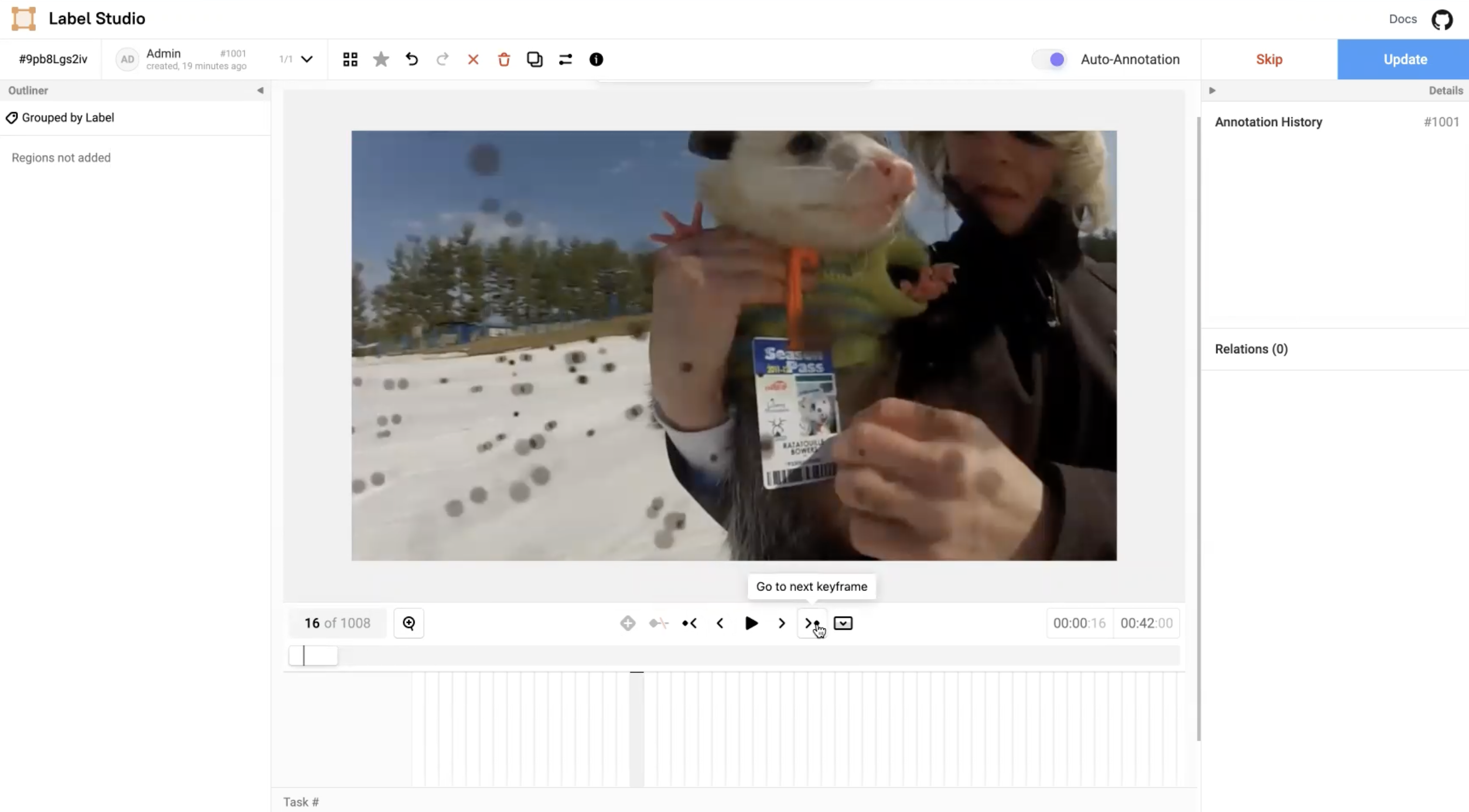 In the Label Studio UI, the video interface presents the main video canvas with controls that allows annotators to more precisely label blurry images using the following operations: